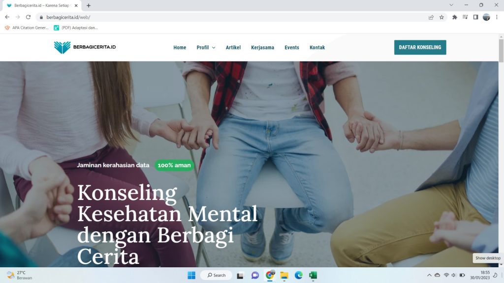 Kunjungi website https://berbagicerita.id/web/ lalu pilih menu pada pojok kanan atas “DAFTAR KONSELING”. Jika Anda menggunakan handphone, klik garis 3 tulisan “MENU” lalu pilih opsi “DAFTAR KONSELING”